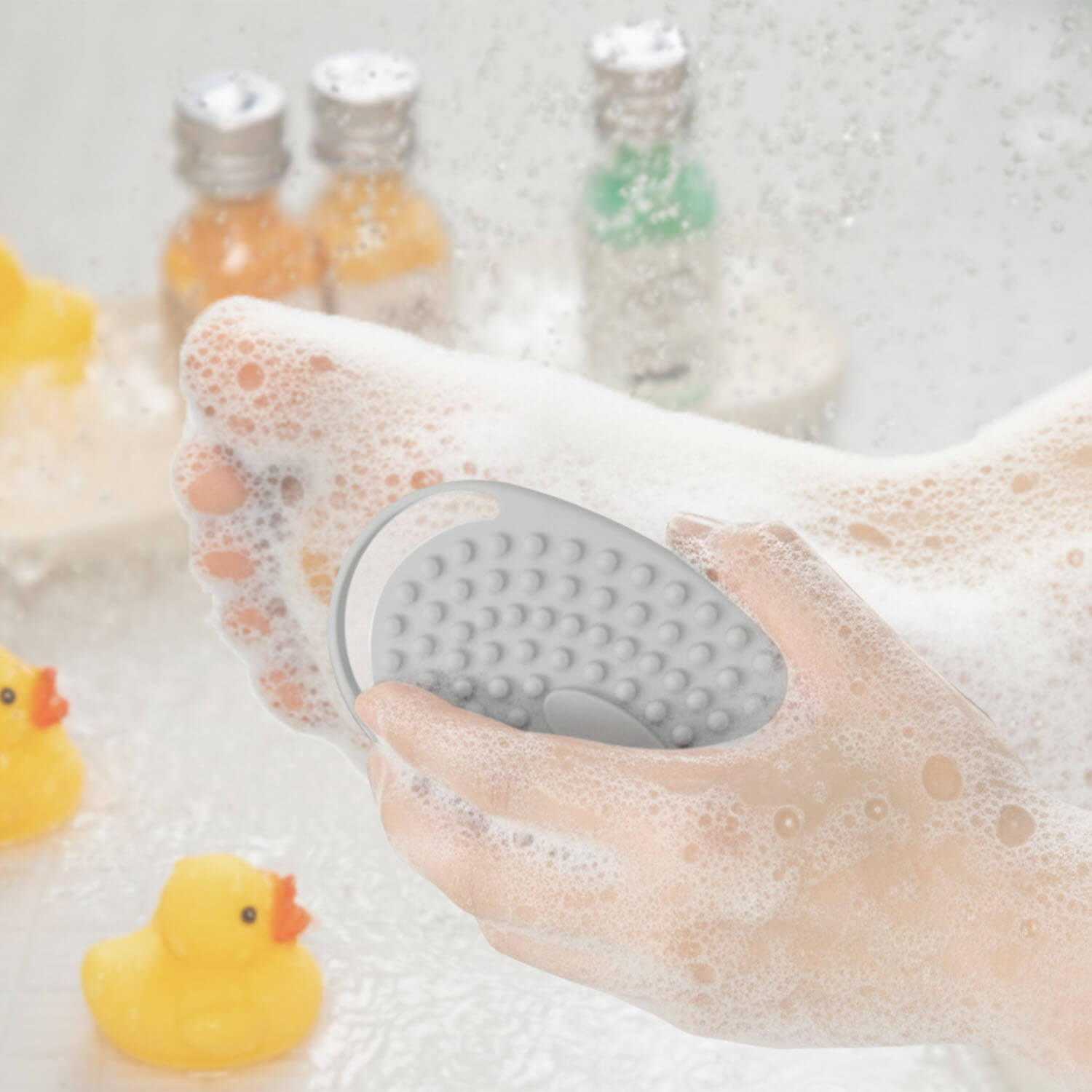 かかとや足の裏、指の間をやさしく洗うことができます。