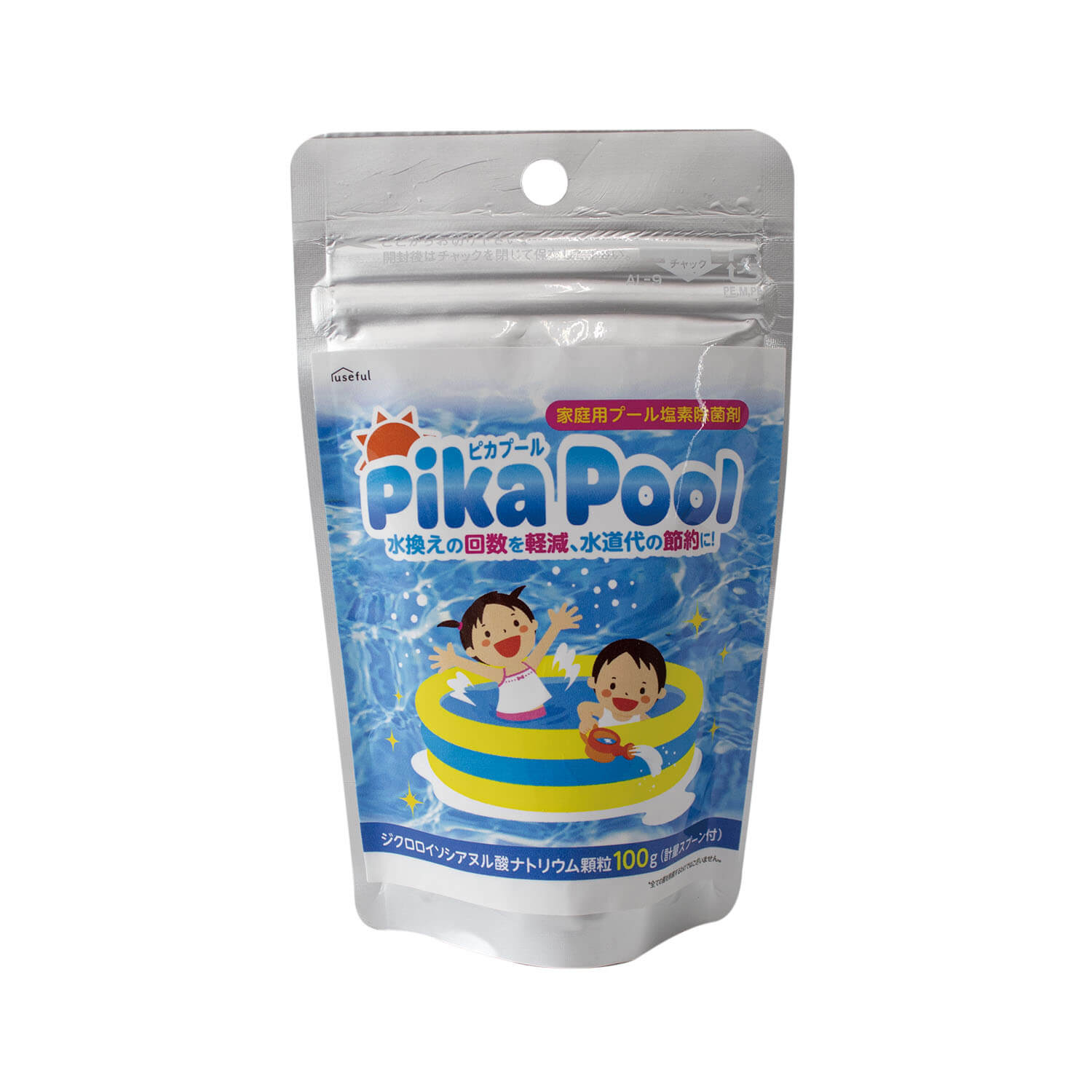 家庭用プールの水を清潔に保ちたいときに便利な、塩素系の家庭用プール除菌剤です。